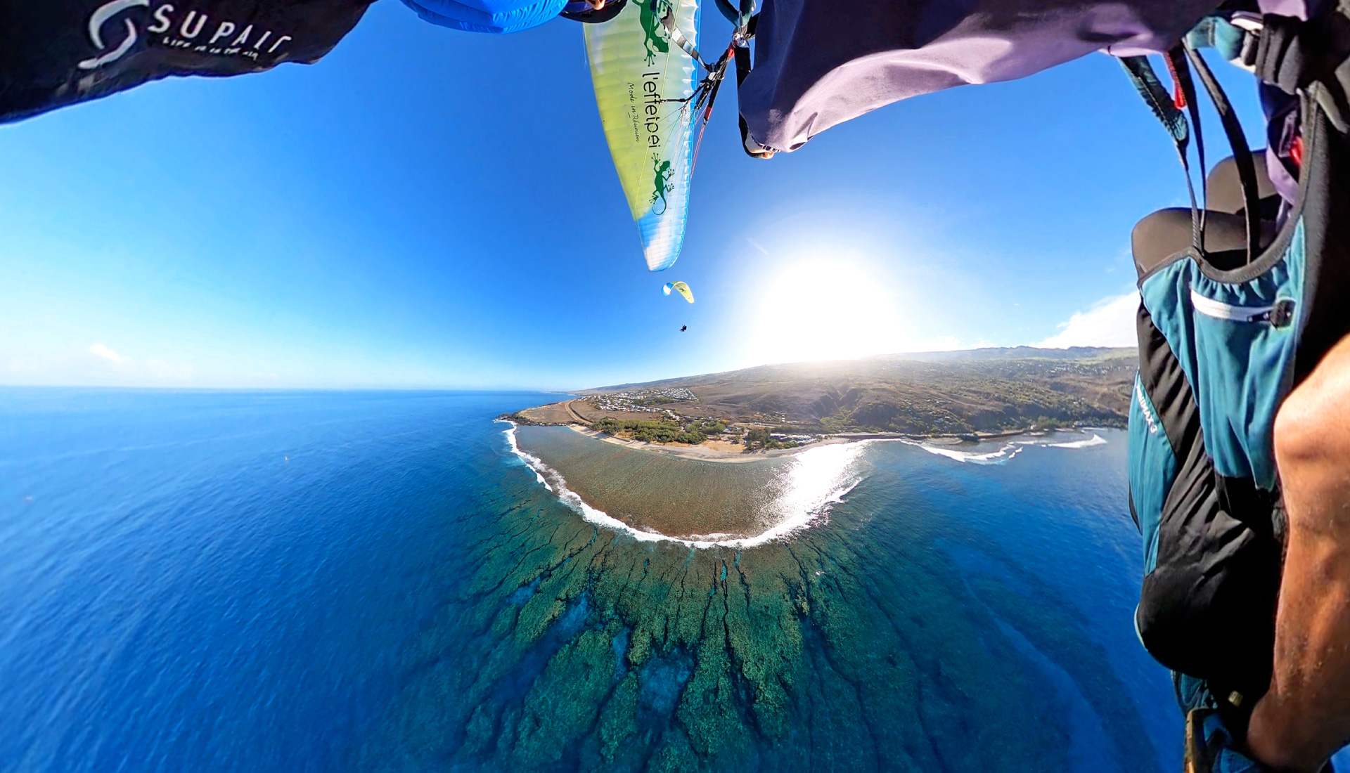 Décollez et posez-vous en douceur pour ce vol qui vous fera découvrir les premières sensations de l’air. Après le survol des champs de cannes et du conservatoire botanique, en contre bas du site des Colimaçons, suivez les courants ascendants pour rejoindre la baie de Saint Leu et survolez le lagon azur. Vous pourrez croiser les tortues marines de Kélonia, un combiné de couleurs et souvenirs inoubliables… Le vol en parapente découverte est accessible à tous.