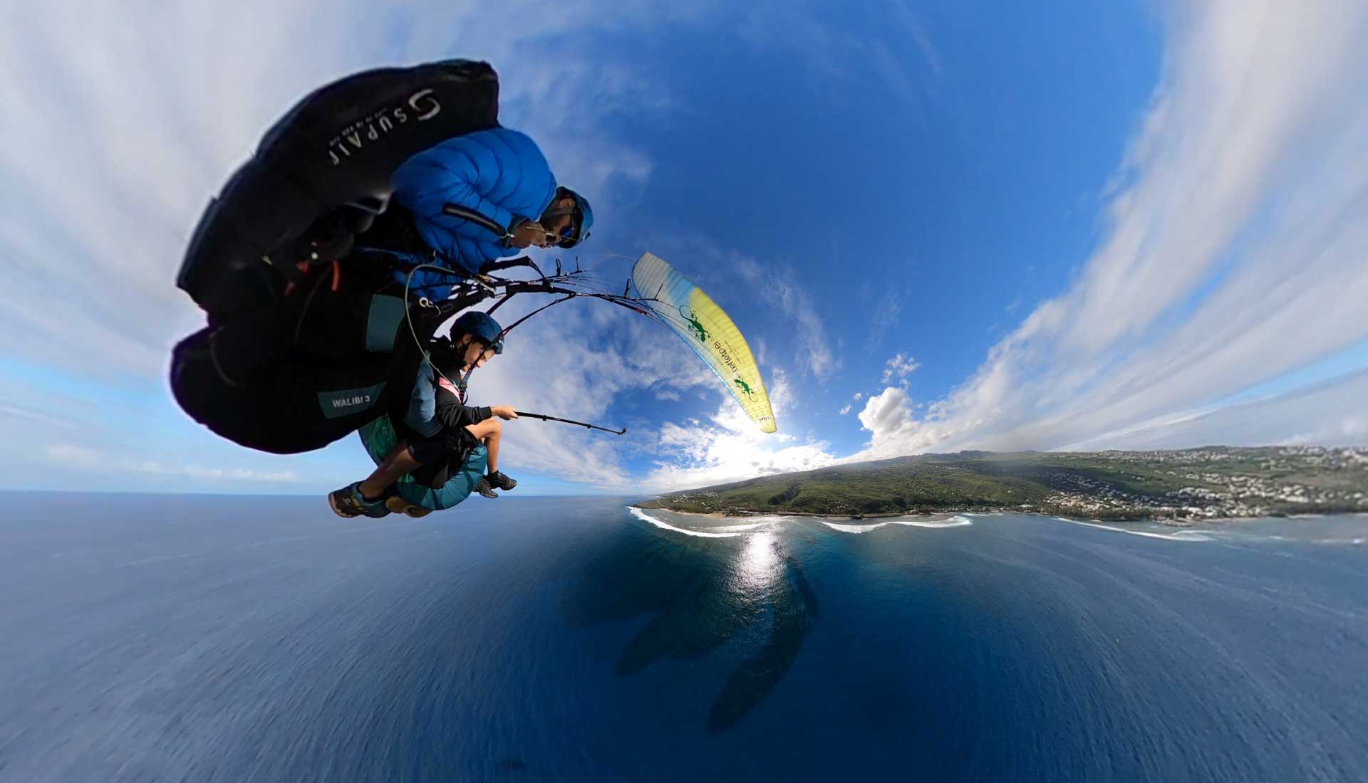 Biplace Marmaille avec un décollage en pente douce, le vol Marmaille l’emmènera à la rencontre de la faune locale, il découvrira paisiblement les sensations de vol avant de se poser à proximité des tortues de Kélonia. Suivant son aisance le moniteur pourra lui confier les commandes pour piloter comme un professionnel… Il sera équipé d’un matériel adapté à son poids et sa taille, pour un maximum de confort -à partir de 7 ans jusqu’à 13 ans.